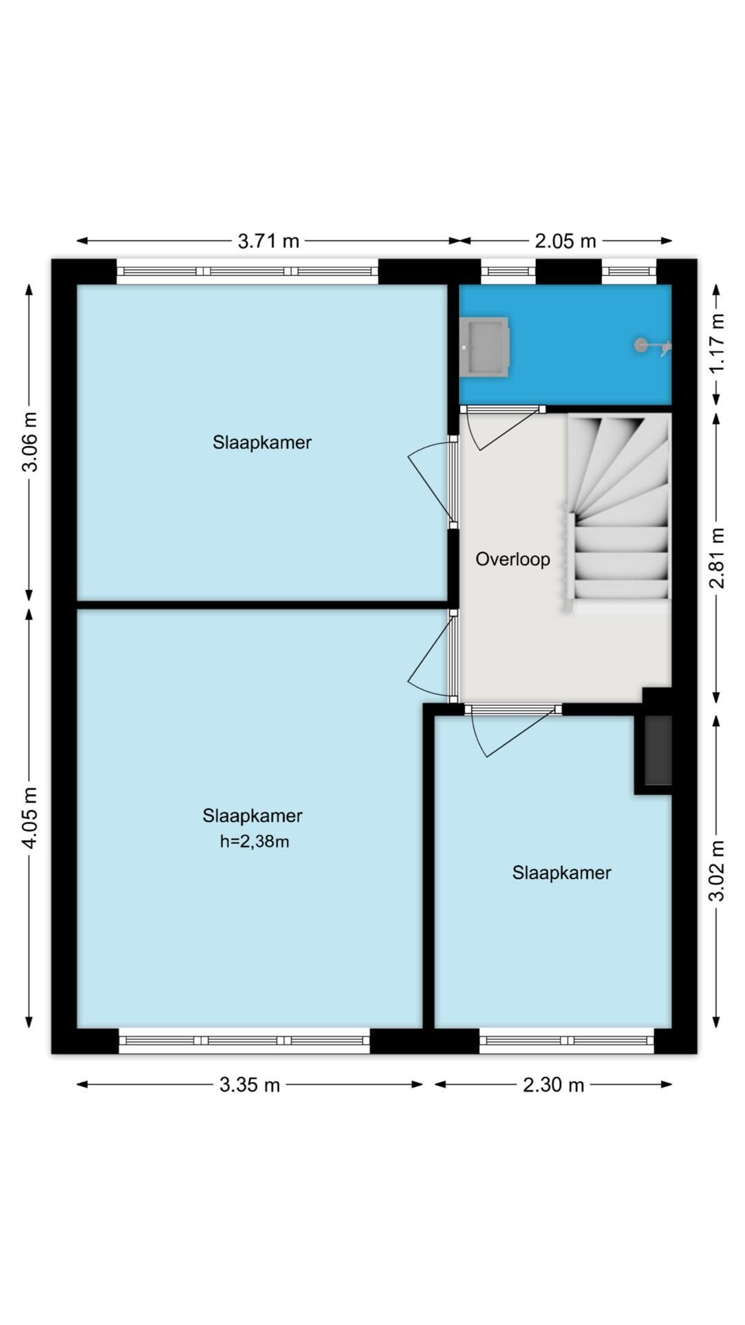 Vanaf de overloop toegang tot 3 slaapkamers, de badkamer en de trapopgang. De moderne badkamer is in 2019 in zijn geheel vernieuwd en is uitgerust met een wastafel en een inloopdouche. De eerste slaapkamer is gelegen aan de straatzijde. Aan de tuinzijde zijn de ruime tweede slaapkamer en de derde slaapkamer gesitueerd.