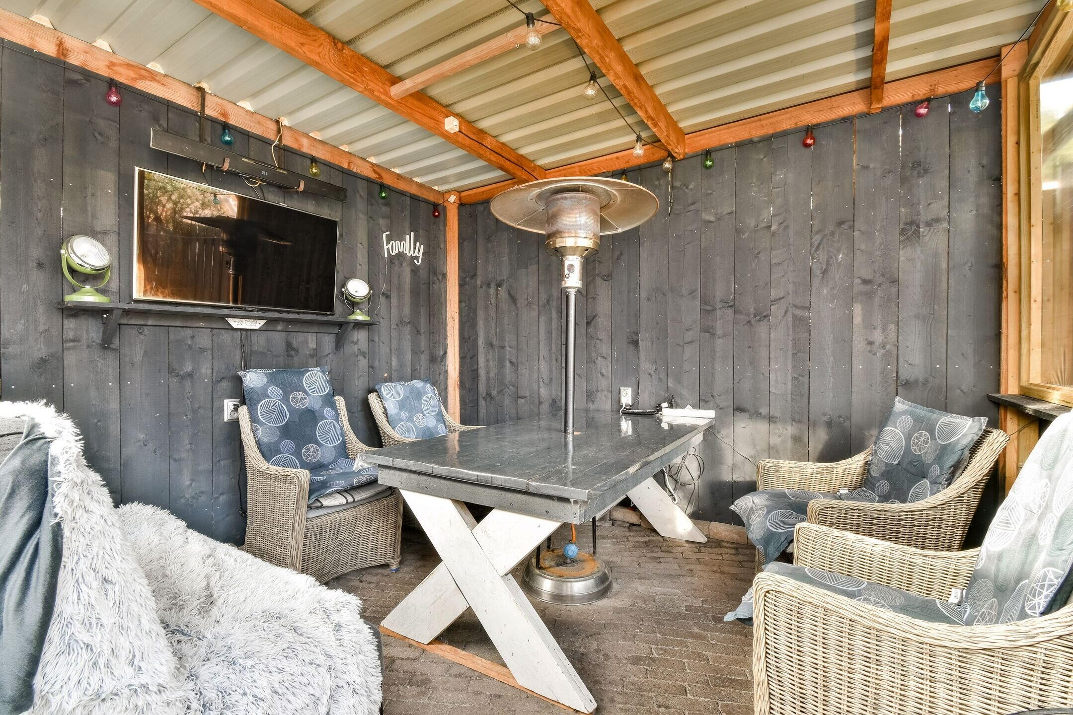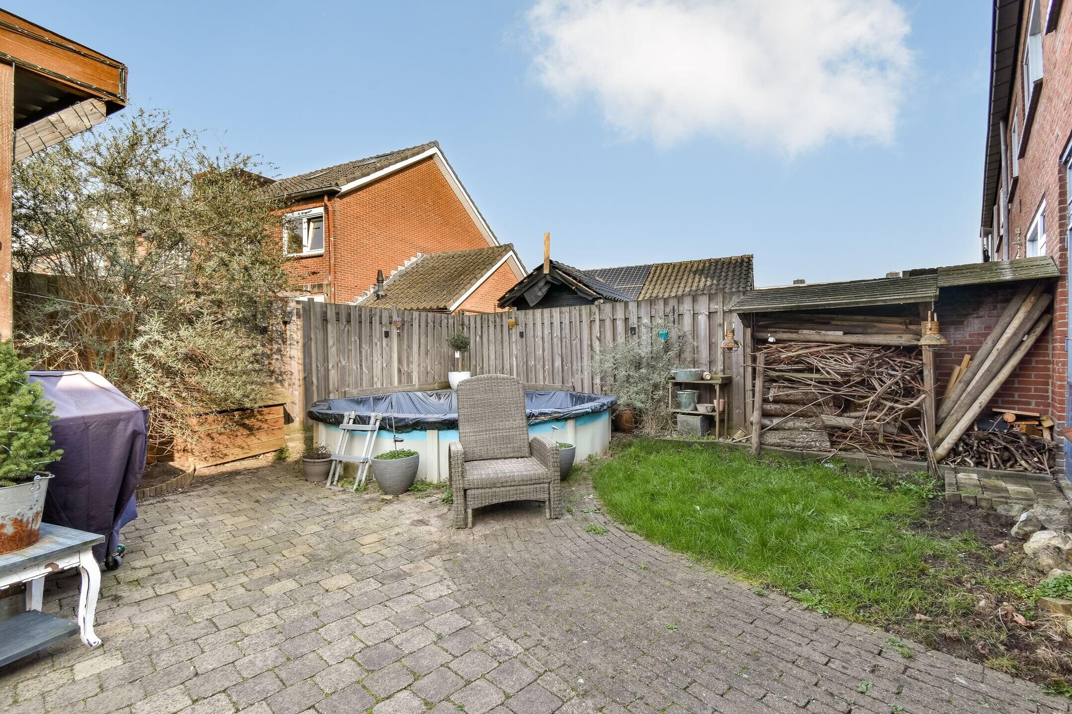 De ruime achtertuin biedt veel privacy, een overkapping, een achterom en zelfs een (deels) ingegraven zwembad.